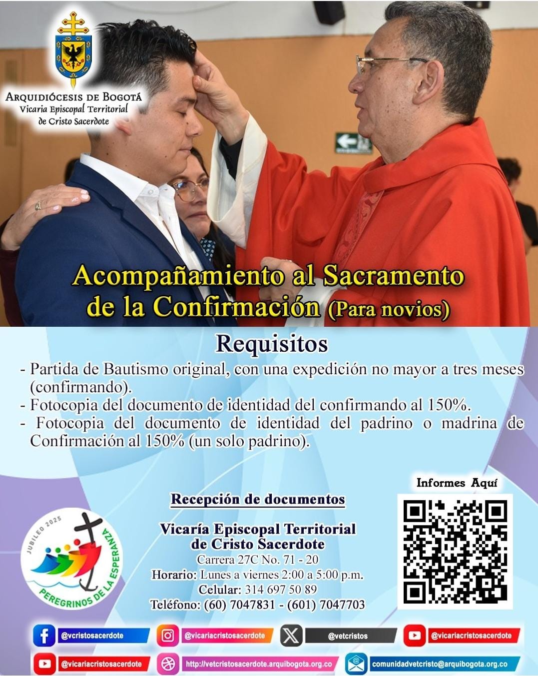 CRISTO SACERDOTE 20 de Enero de 2025 Like 2 Dislike 0 Otros artículosLa Arquidiócesis de Bogotá acompaña la Pastoral Familiar3 de Marzo de 2026#FamiliasCultivandoLaFe Curso Específico III "Fundamentos teológicos - pastorales para la preparación inmediata al sacramento del matrimonio"19 de Febrero de 2026#FamiliasCultivandoLaFe
