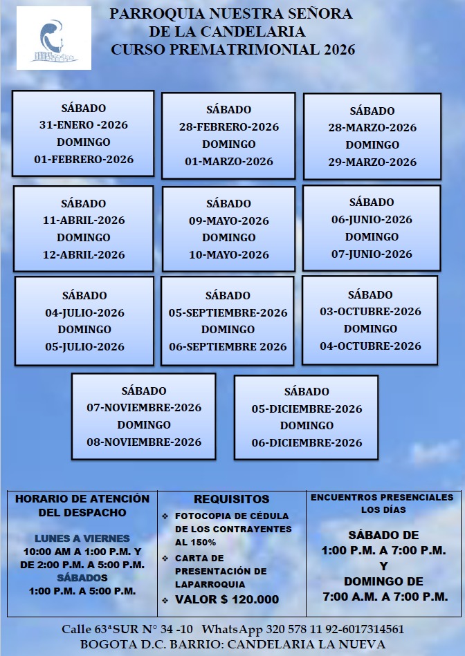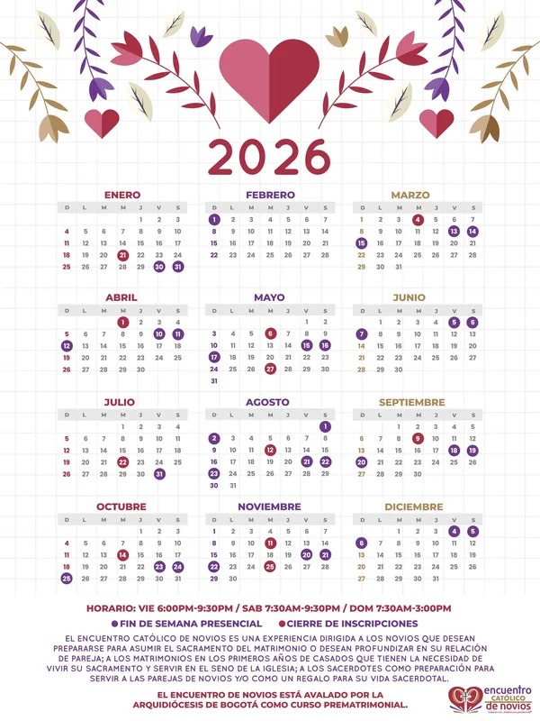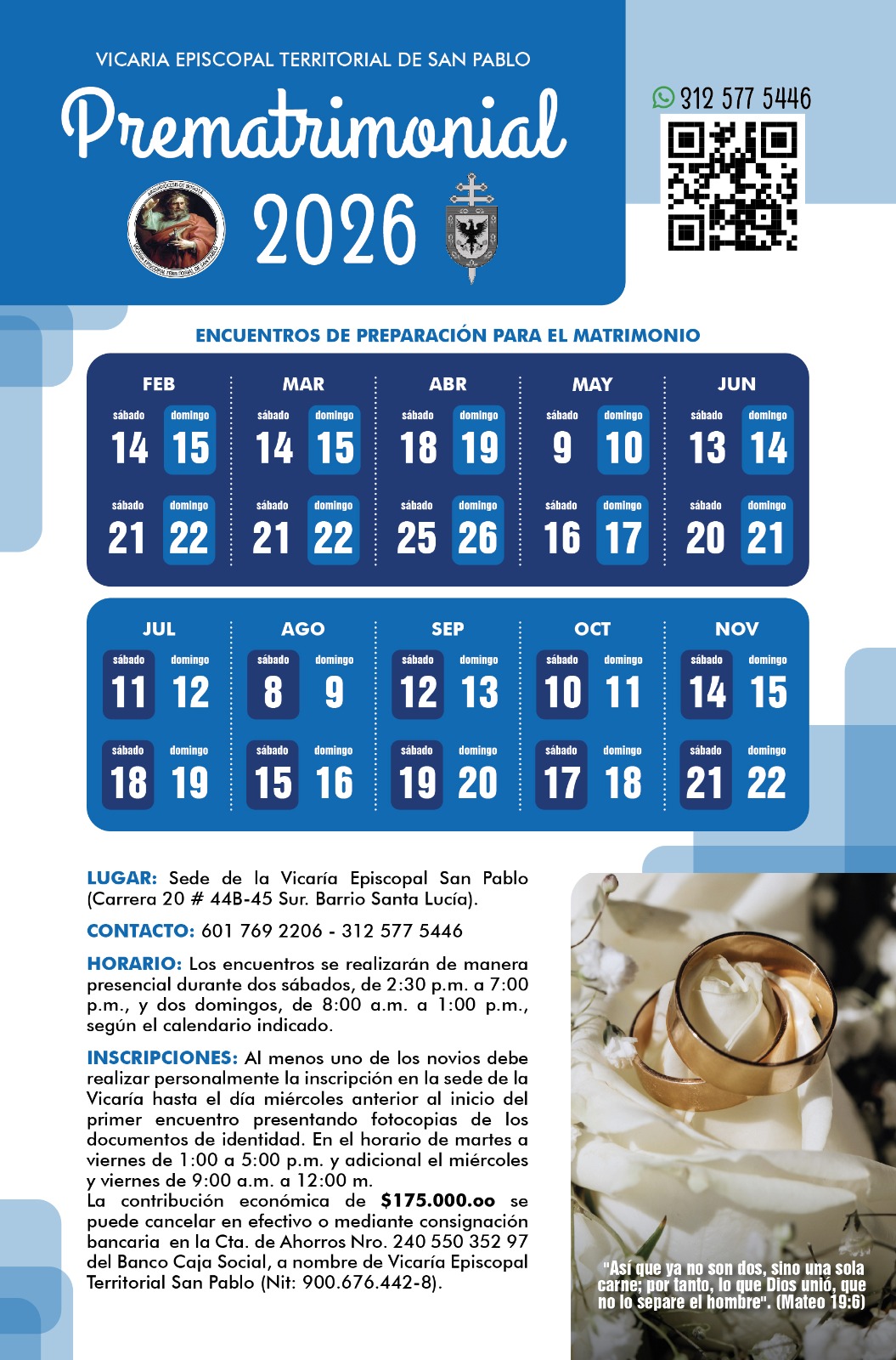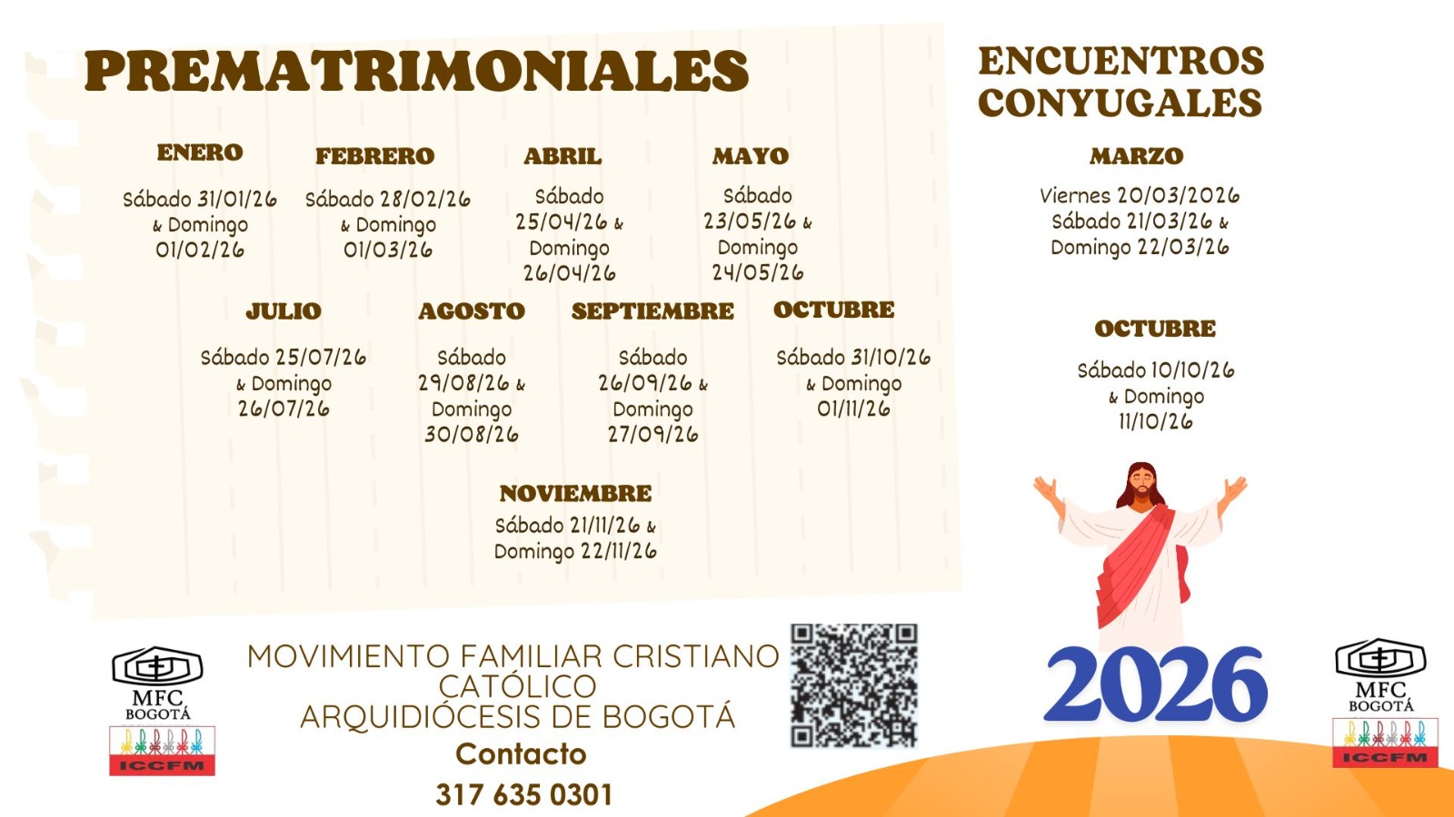 PROGRAMACIÓN DE LOS ENCUENTROS PREMATRIMONIALES AÑO 2026