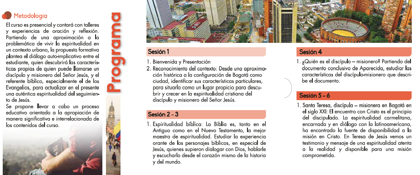 Centro de información Yo quiero Noticias Boletines Eventos Artículos Canonización Mensajes del Señor Cardenal Cartas pastorales Homilías Mensajes La voz del pastor Documentos del Vaticano NoticiasCurso Espiritualidad del discípulo misionero12 de Agosto de 2015 Like 0 Dislike 0 Noticias relacionadas Archivo del Plan de Predicación - 2024-2025 Tiempo para nutrir, cuidar y testimoniar la fe La Arquidiócesis de Bogotá celebró la ordenación de nuevos sacerdotes y diáconos
