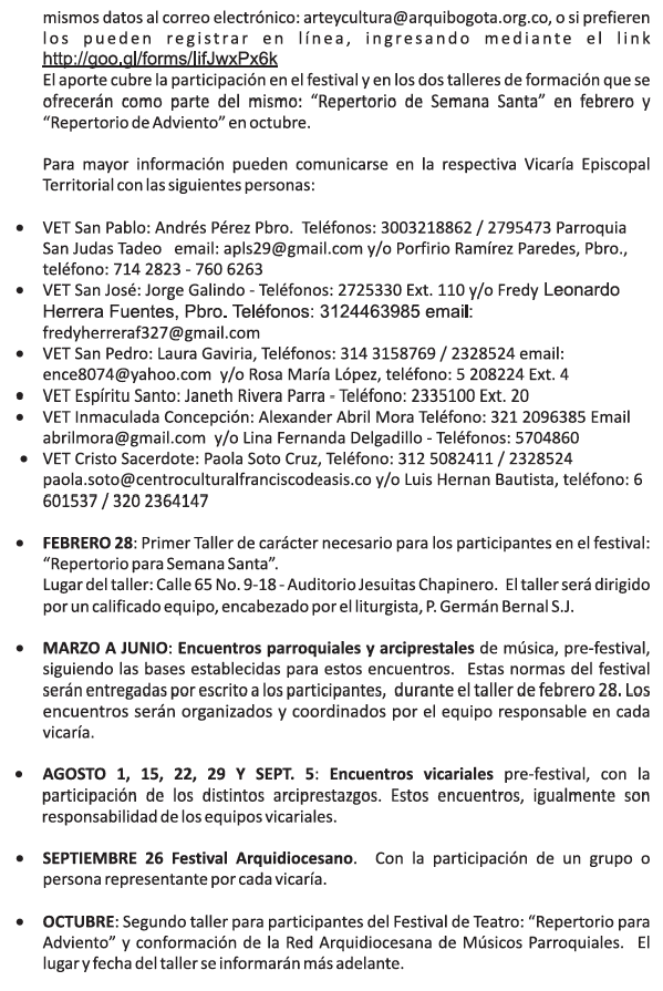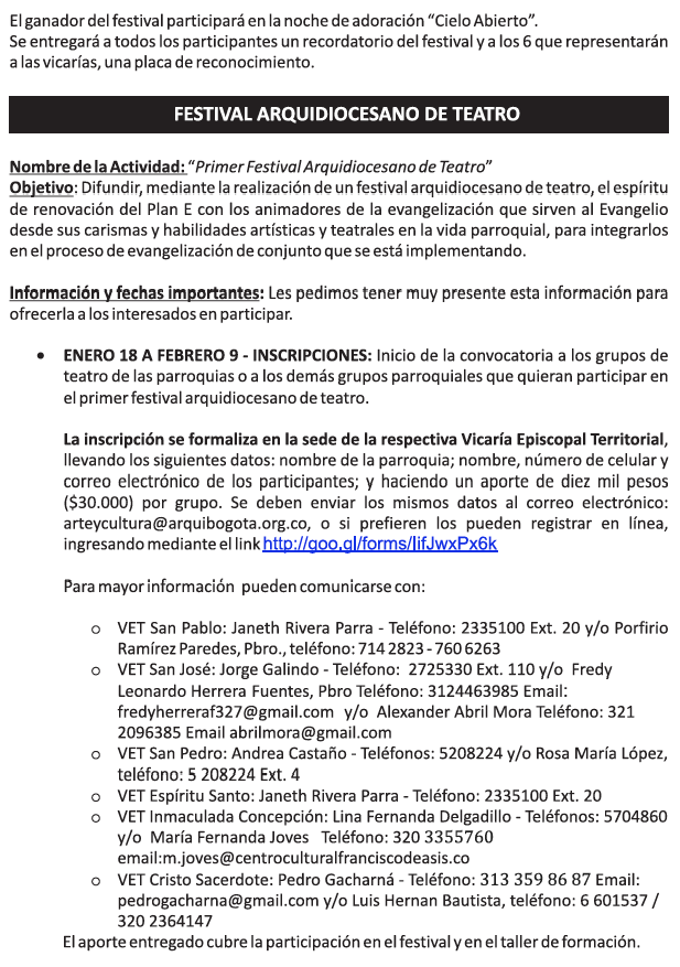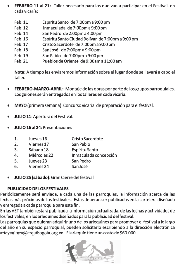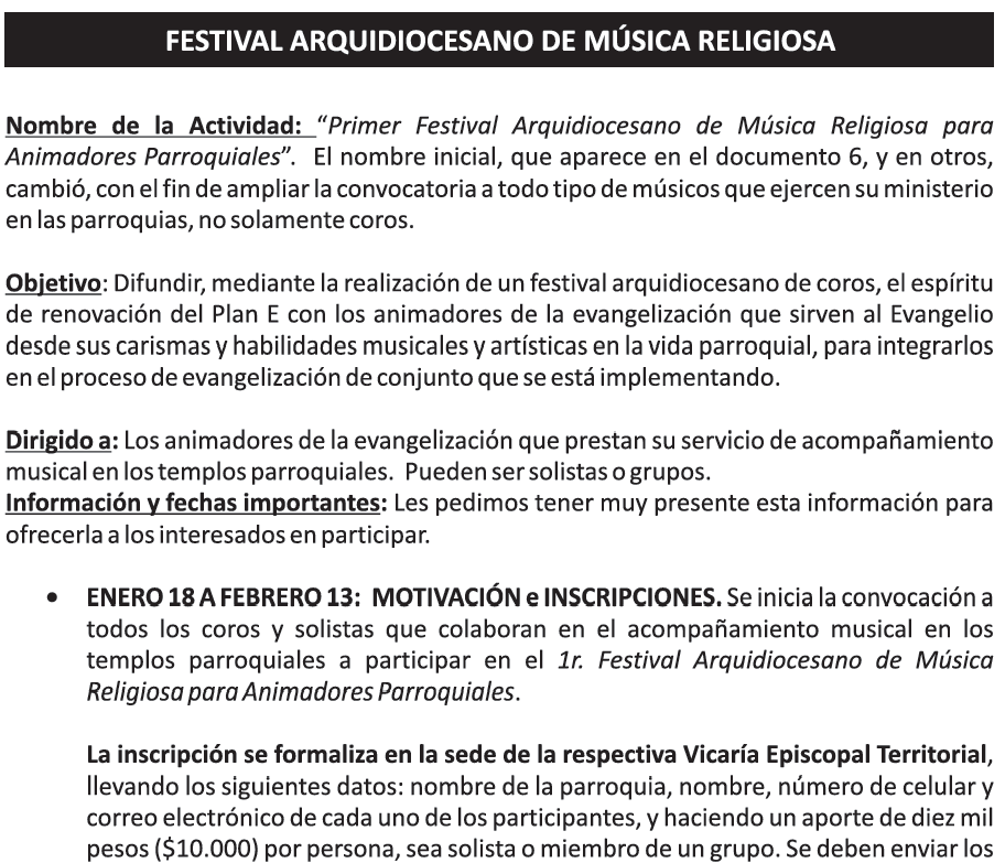 A continuación se presenta una información básica acerca de los festivales arquidiocesanos de música y teatro, programados como actividades complementarias del Gran Giro…