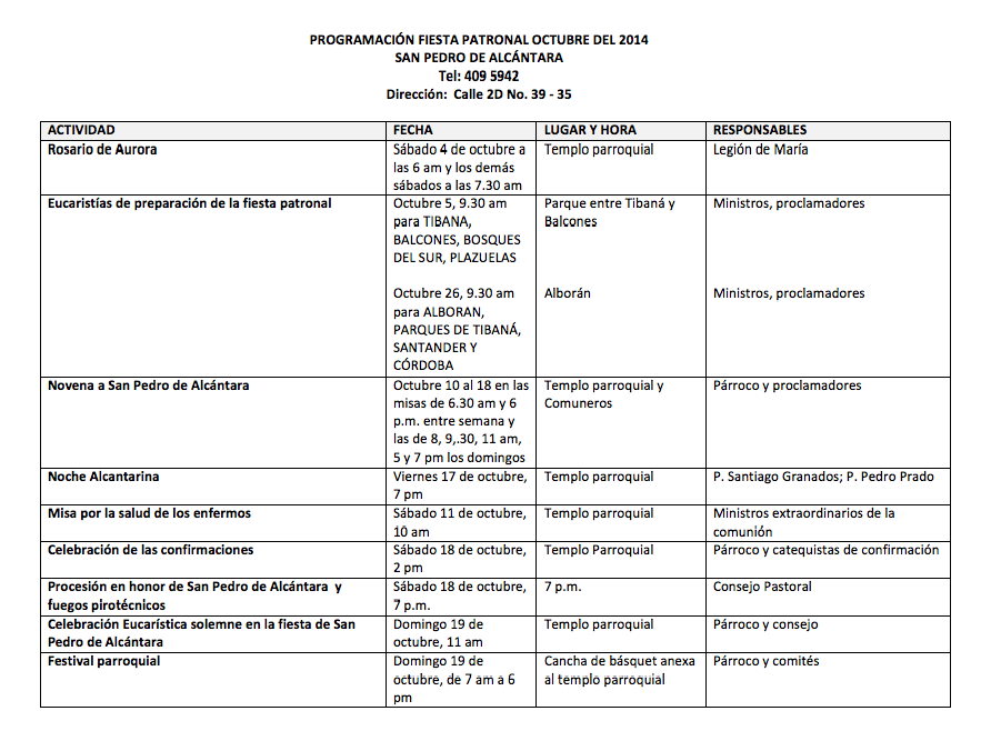 Centro de información Yo quiero Noticias Boletines Eventos Artículos Canonización Mensajes del Señor Cardenal Cartas pastorales Homilías Mensajes La voz del pastor Documentos del Vaticano NoticiasProgramación fiesta patronal octubre del 201419 de Octubre de 2014 Like 0 Dislike 0 Noticias relacionadas Archivo del Plan de Predicación - 2024-2025 Tiempo para nutrir, cuidar y testimoniar la fe La Arquidiócesis de Bogotá celebró la ordenación de nuevos sacerdotes y diáconos